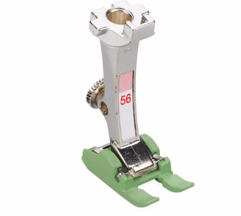 The Open Embroidery Foot with Non-Stick Sole #56 is a versatile tool, perfect for sewing appliqués, decorative trims, elastic, and Richelieu embroidery. This foot handles circular and linear embroidery with ease, allowing for precise stitching along curves and corners. Its non-stick sole ensures smooth feeding over “sticky” materials like leather or vinyl, while the large, wedge-shaped channel under the foot allows easy movement over dense stitch areas. The open-toe design provides an unobstructed view of the sewing area, ensuring accuracy and control throughout your project.