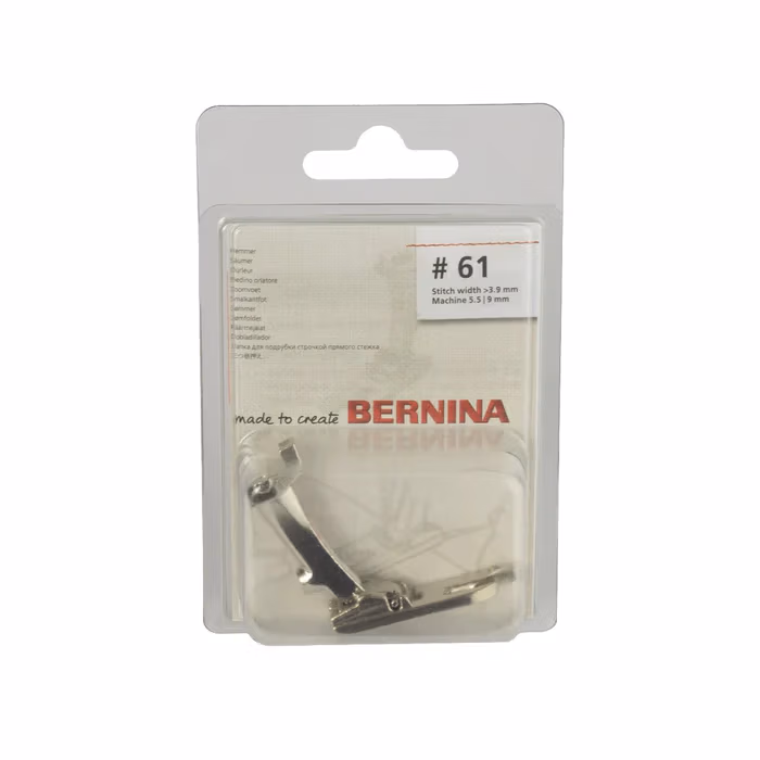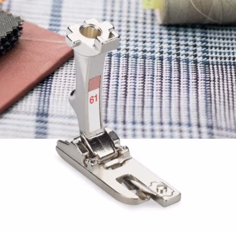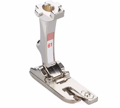 When using Zigzag Hemmer #61, the fabric is smoothly fed into a scroll mechanism that carefully folds the edge under twice, creating a clean, fray-resistant hem. This built-in guide maintains the folded hem’s shape as it reaches the needle, where it’s securely stitched with a zigzag pattern. The result is a narrow, durable hem that flows effortlessly under the foot, ideal for finishing edges on lightweight fabrics.