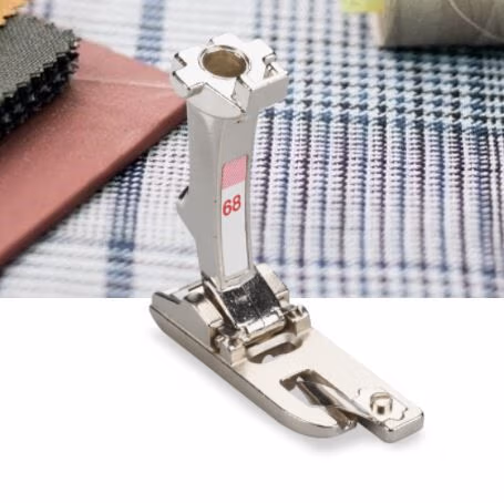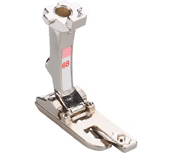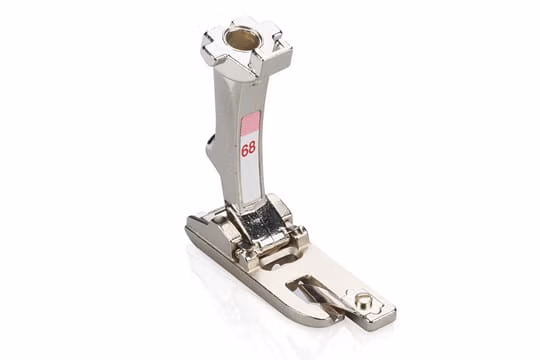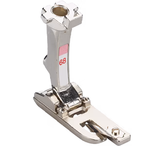 Roll and Shell Hemmer #68 is perfect for creating narrow, sturdy hems on soft fabrics like T-shirts and undergarments. A built-in scroll feeds and double-folds the fabric edge in a single step, producing the popular scalloped or shell hem. With a 2 mm wide guide that is both deeper and rounder than standard hemmer feet, this foot allows for a slightly raised, decorative hem pattern, adding a professional finish to your garments.