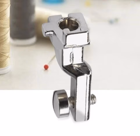 Standard Adapter Shank #75 is a specialized accessory that enables the attachment of Ruffler #86 for gathering and pleating fabrics of different types. This adapter acts as a precise connecting piece, fitting securely between the needle bar and the desired accessory. Accessories can be easily attached to the Adapter Shank with a single screw, ensuring quick and secure setup for specialized sewing tasks.