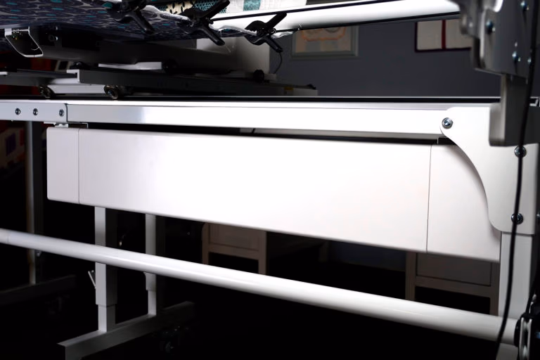 The Handi Quilter My Secret Drawer for the Gallery Frame is a stylish and functional storage solution designed to seamlessly integrate with your quilting frame. Its smooth-glide, easy-open design allows for effortless access, and you can choose to install it with either front or back access. Up to three drawers can be installed on a 12-foot frame, though if you store batting on your frame, it’s best to install just one drawer, as the drawers clear the batting storage pole but not the roll of batting. Each drawer is rated to hold up to 100 lbs, and the zinc-plated hardware is corrosion-resistant for long-lasting durability.
