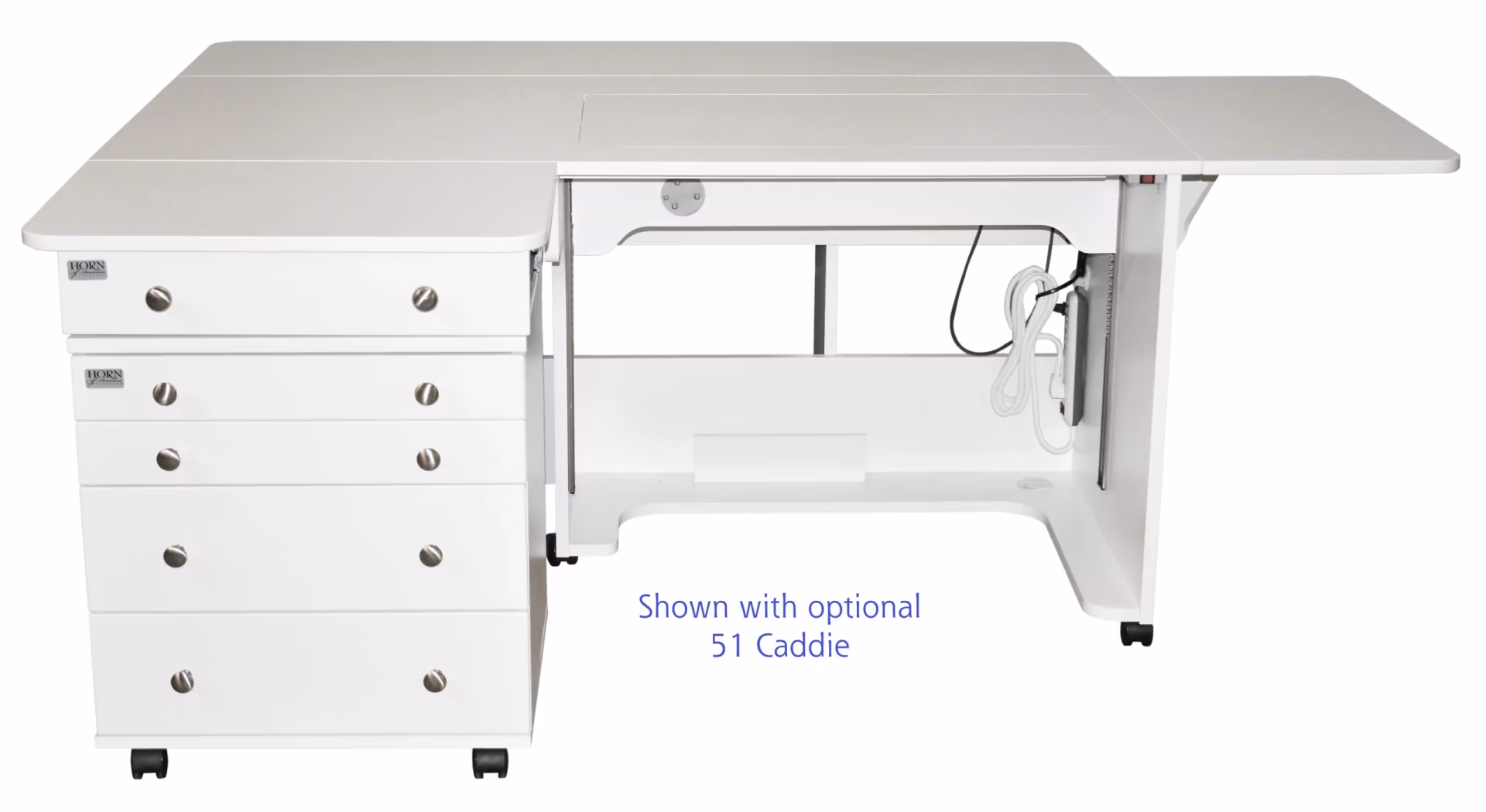 The Model 51 Caddie is expertly designed to fit seamlessly under the drawer of your 5180 or 5280 Super Quilter’s Dream cabinets. It features two shallow drawers for smaller notions and two deep drawers for larger items, providing versatile storage to meet all your sewing and quilting needs.